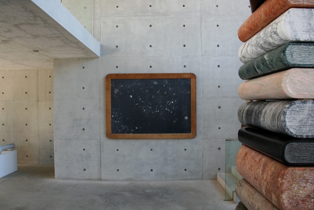 er erstmals sein bevorzugtes Material, feinen Sichtbeton, mit der Rekonstruktion einer